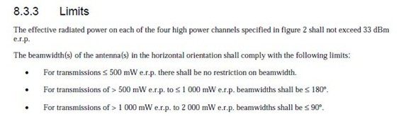 3:1000mW至2000mW erp的,其發(fā)射機(jī)射束帶寬不超過(guò)90°。