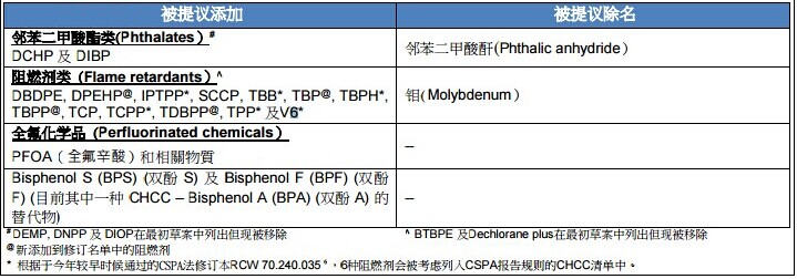 獲華盛頓州兒童產(chǎn)品安全法案(CSPA)授權(quán)之兒童安全產(chǎn)品法報告規(guī)則第 173-334 條(CSPA 報告規(guī)則)4 規(guī)定兒童產(chǎn)品制造商每年須向 DOE 報告于兒童產(chǎn)品中存在的 CHCC。 CHCC 名單最早于 2011 年設(shè)立,于 2013 年更新并有 66 個化學(xué)品 。發(fā)布提議清單被視為是 DOE 更新 CSPA 報告規(guī)則的其中一部分。