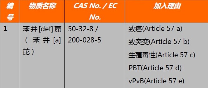 赫爾辛基2016年6月20日,歐盟化學(xué)品管理局(ECHA)公布了第15批高關(guān)注物質(zhì)(SVHC)候選清單,將1項物質(zhì)苯并[a]芘加入到清單中。截止至目前,SVHC候選清單一共有169項物質(zhì)。