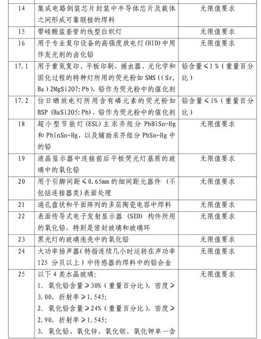 為貫徹落實《電器電子產(chǎn)品有害物質(zhì)限制使用管理辦法》,2018年3月15日中華人民共和國工業(yè)和信息化部發(fā)布了《電器電子產(chǎn)品有害物質(zhì)限制使用達(dá)標(biāo)管理目錄(第一批)》和《達(dá)標(biāo)管理目錄限用物質(zhì)應(yīng)用例外清單》,并將于2019年3月15日正式施行。納入目錄的產(chǎn)品,鉛、汞、鎘、六價鉻、多溴聯(lián)苯和多溴二苯醚的含量應(yīng)該符合電器電子產(chǎn)品有害物質(zhì)限制使用限量要求等相關(guān)標(biāo)準(zhǔn),并納入電器電子產(chǎn)品有害物質(zhì)限制使用合格評定制度管理范圍。列入《達(dá)標(biāo)管理目錄限用物質(zhì)應(yīng)用例外清單》的可暫不按本要求執(zhí)行。